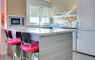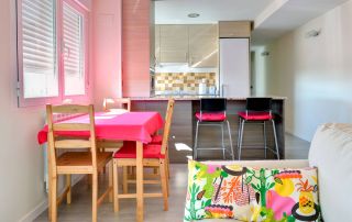 Todas las habitaciones tienen armario, mesa, silla de estudio, cama, mesillas y estanterías. Además, la cocina tiene todos los electrodomésticos: lavadora, lavavajillas, horno, nevera, arcón congelador, microondas, vitrocerámica, cafetera, tostadora…