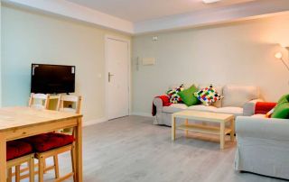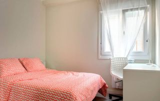 Consta de 3 dormitorios, 2 baños, salón y cocina-comedor con balcón. El precio de las habitaciones es de entre 395 € hasta 495 € (esta habitación con baño privado), dependiendo del tamaño de la habitación.