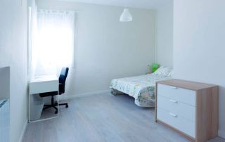 Las habitaciones tienen entre 14 m y 20 m, cama de 1.50 m con mesilla, armario doble y mesa y silla de estudio y el precio es entre 450 € y 505 € (habitación con baño privado), dependiendo del tamaño de la habitación. Están incluidos todos los gastos: luz, agua, calefacción, comunidad e internet.