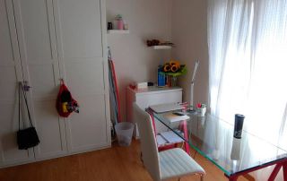 Tiene 5 habitaciones, dos baños, cocina con galería y  terraza en el salón. Es  muy luminoso  y todas las habitaciones tienen armario, mesa de estudio, cama, mesillas y estanterías.
