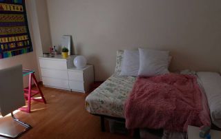 • Una habitación tiene 10 m, cama de 1,20, mesa y silla de estudio, mesilla y el precio es de 400 €.