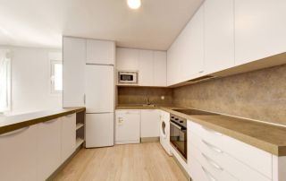 La cocina tiene todos los electrodomésticos: lavadora, lavavajillas, horno, nevera, microondas, vitrocerámica, cafetera, tostadora…